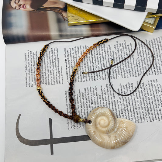 Chunky Shell necklace, Chunky Charm Necklace, Boho Cord Necklace, Snail necklace Pendant, Charm necklace for women,