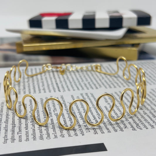 Simple Golden Choker Necklace, Handmade Wavy Wire Choker Necklace