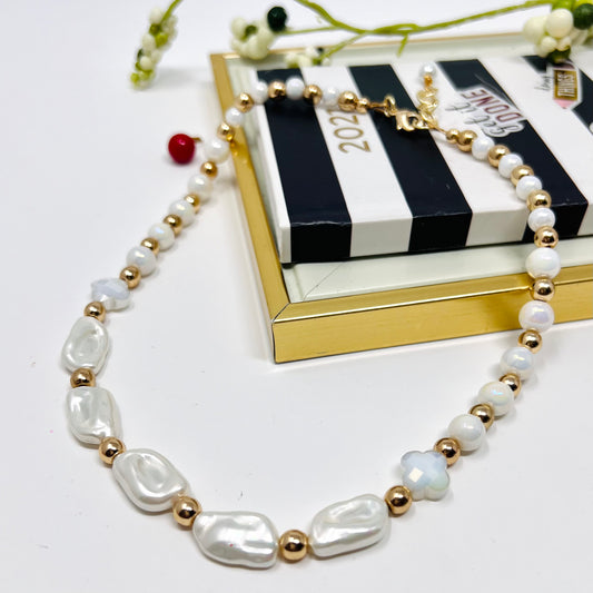 Pearl necklace, natural pearls and hematites beads choker necklace