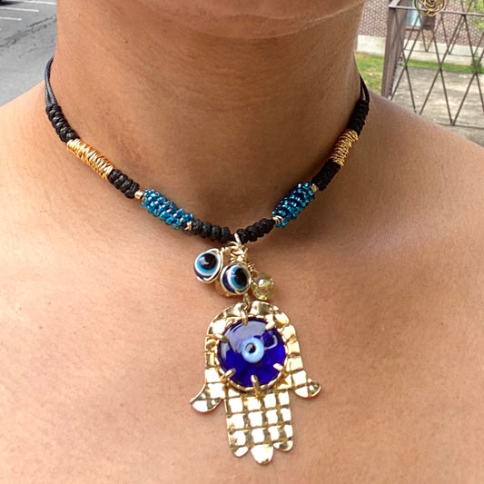 Evil Eye Hand Of Fatima Necklace Adjustable