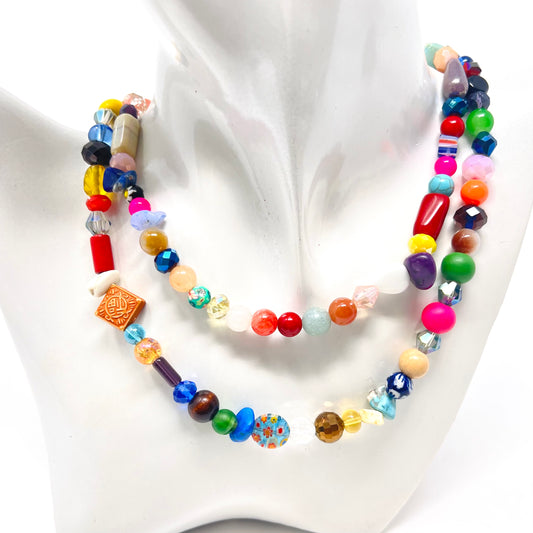 Colorful beaded necklace, y2k necklace, gemstone beads necklace, summer necklace, chunky beaded necklace, multicolor beaded necklace