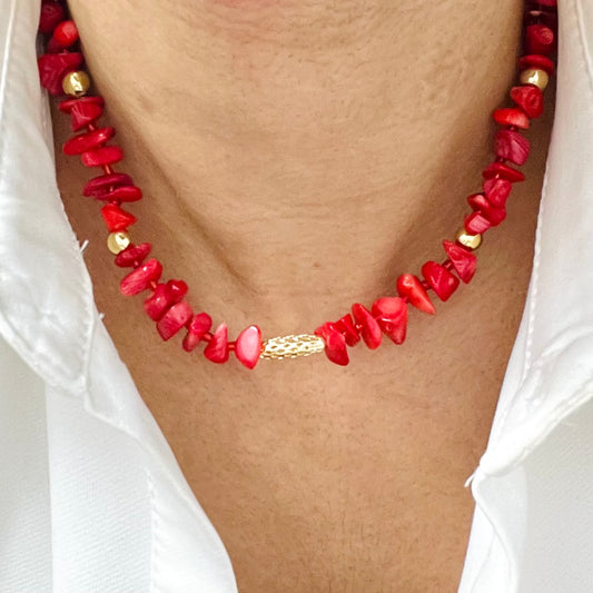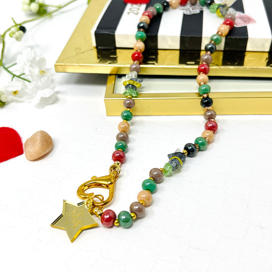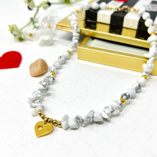 Beaded Choker Necklace, Natural Stone Choker, Gold Plated Charm