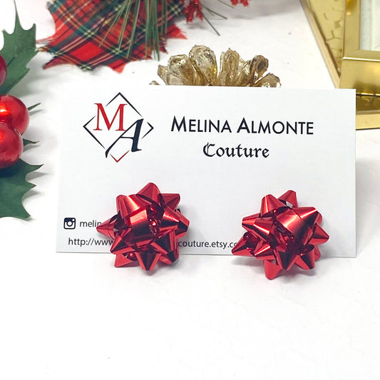 Christmas Bow Earrings, Holiday Earrings, Stud earrings, Christmas gift