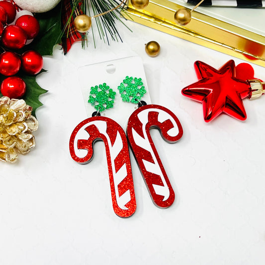 Christmas Cane Earring, Holiday Earrings, Dangle & Drop Earrings