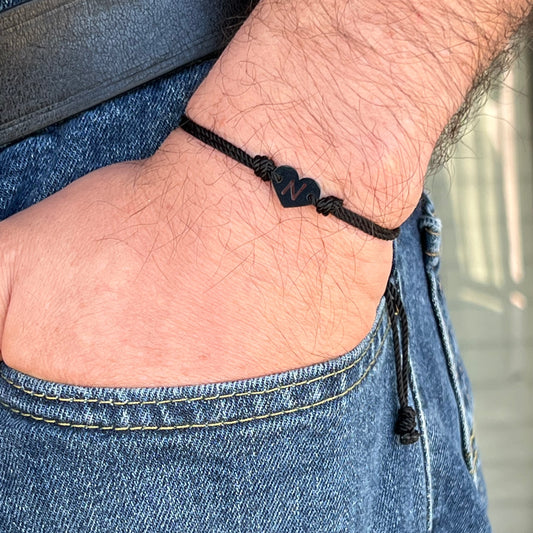 Personalized Men Bracelet, Initial heart charm Bracelet, gift for him, Gift boyfriend valentines, dad gifts, Couples gits, couples bracelet