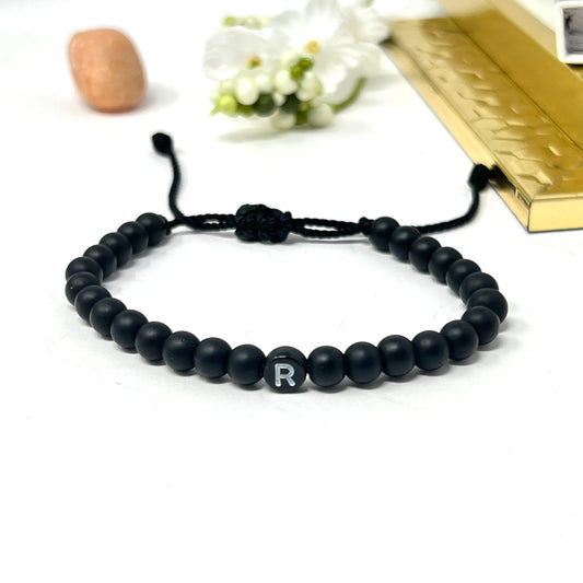 Initial Bracelet men, Personalized Bead Bracelet, Christmas gift for Boyfriend, Couples gift bracelet, Custom gift, Black bracelet