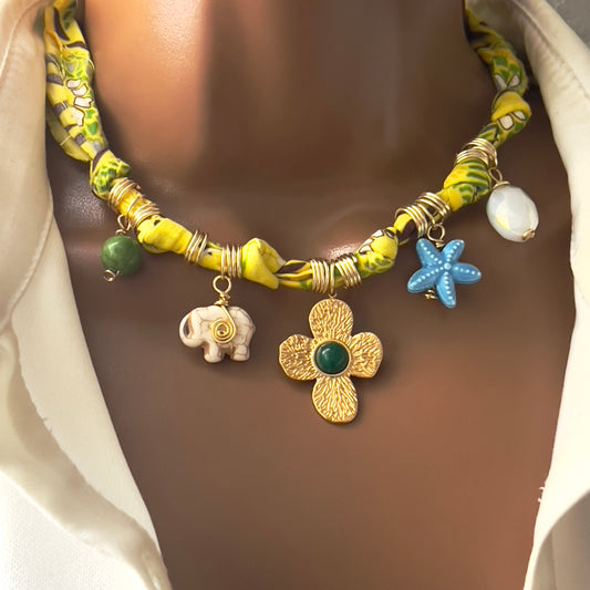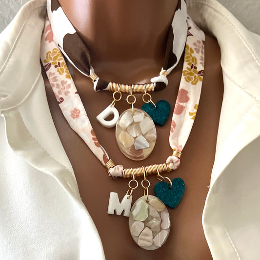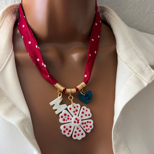 Custom Bandana Charm Necklace, Bandana Flower Pendant Necklace, Boho Scarf Necklace, Vintage Charm Necklace, Fabric Pendant Necklace Gift