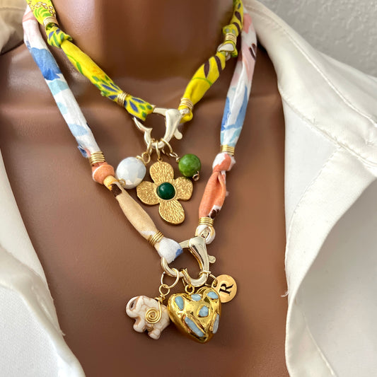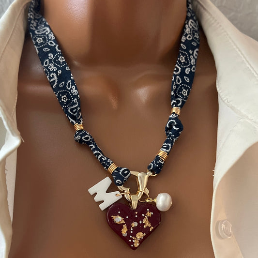 Bandana Charm Necklace, Custom Bandana Pendant Necklace, Boho Scarf Necklace, Vintage Charm Necklace, Fabric Pendant Necklace, Gift for Her