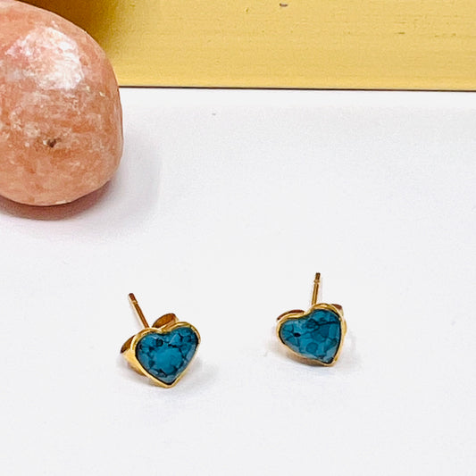 Stainless Steel Turquoise Heart Shaped Stud Earrings, Tiny Earrings, Dainty Post earrings For Women