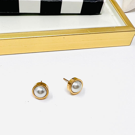 Stainless Steel Pearl Stud Earrings, Post Gold Earrings, Dainty Earrings For Women