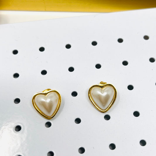 Stainless Steel Pearl Heart Stud Earrings, Dainty Gold Earrings, Post Earrings For Women
