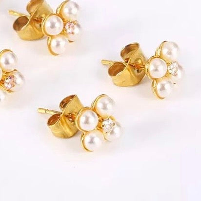 Tiny Flower Pearl Earrings Stainless Steel, Dainty Earrings For Women,