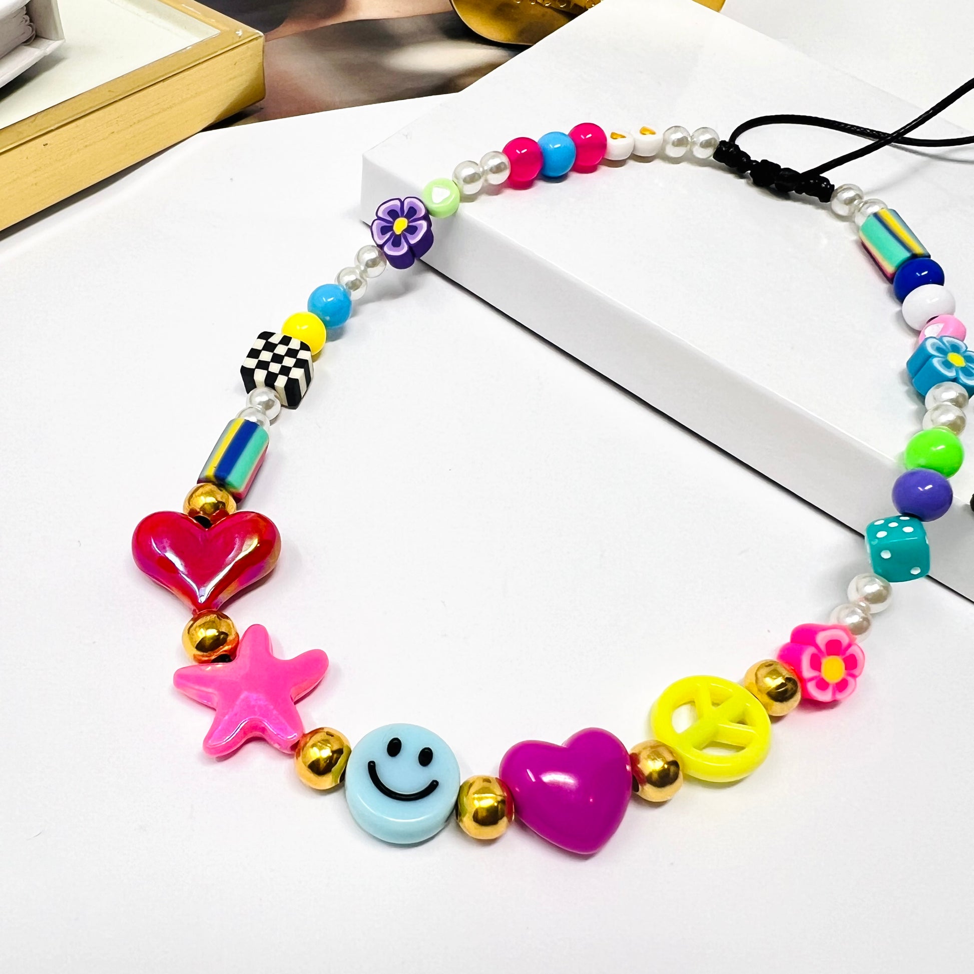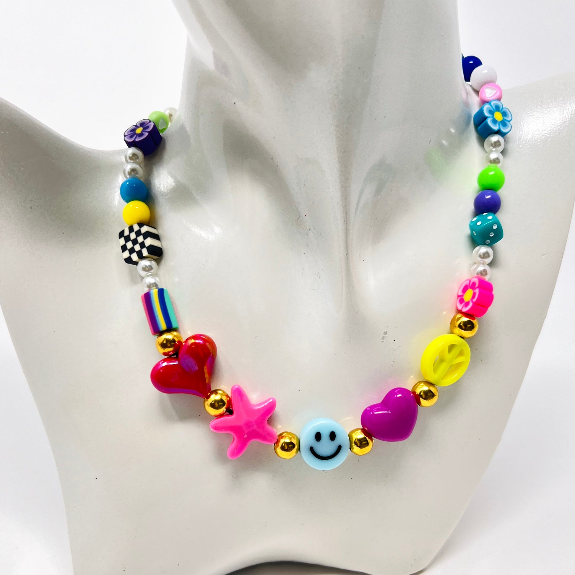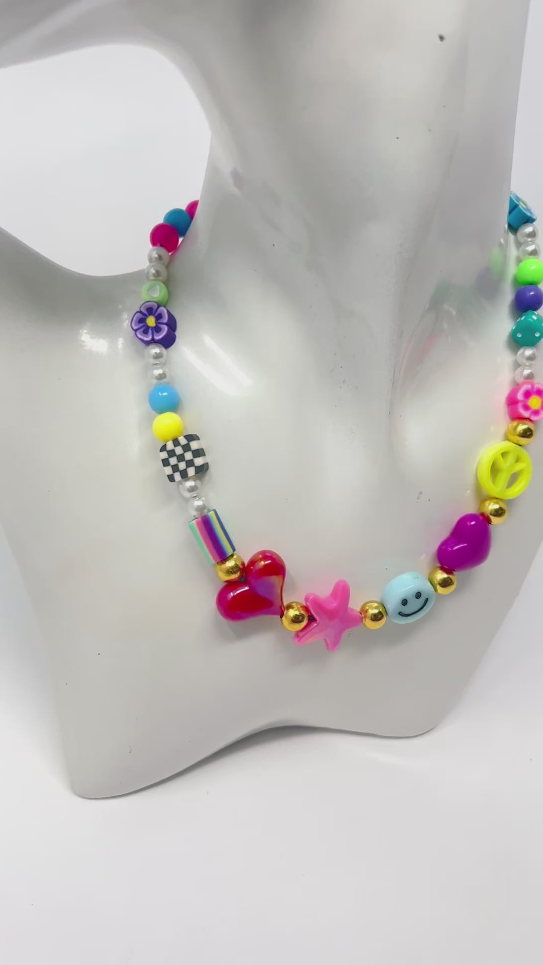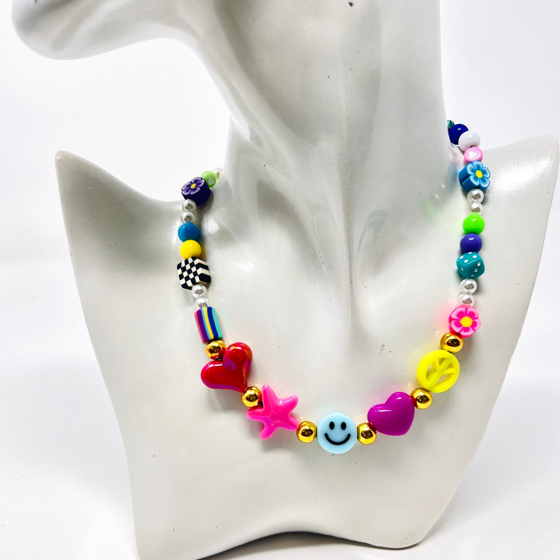 This fun and very original summer necklace mixed with colorful beads, pearls, and charms is adjustable so you can combine it with other necklaces, it is an excellent gift for a best friend, sister, daughter, mother, etc. The elaborate length of beads and charms is 14 inches and its total length is 35 inches so you can adjust it to the length of your preference