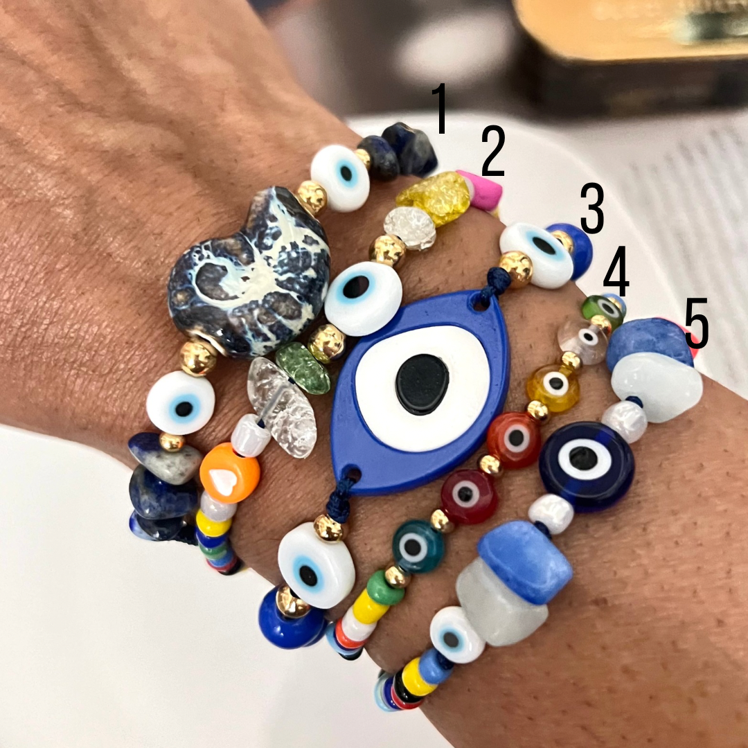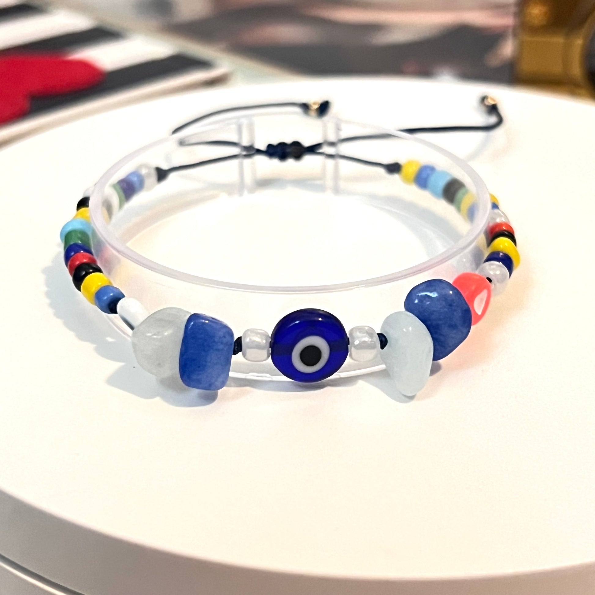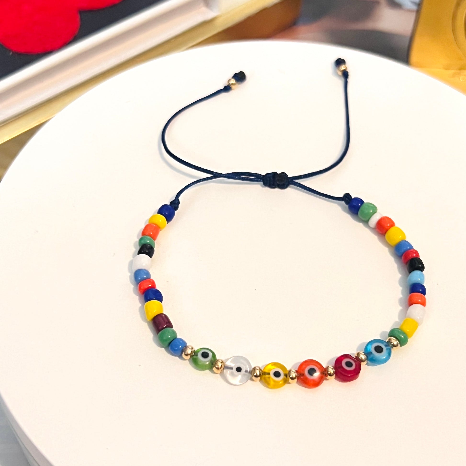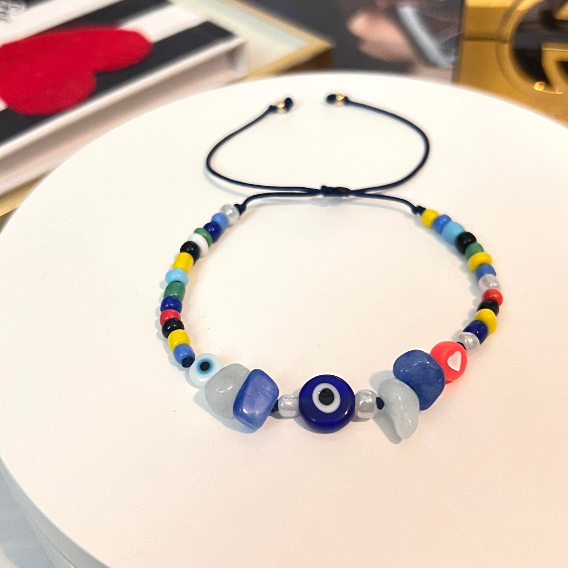 Beautiful handmade summer evil eye bracelet adjustable with several fun charms to give color and joy to your summer, excellent gift idea for your best friends, you can combine them with our summer choker I will leave the link below and it will enhance your outfit to another level