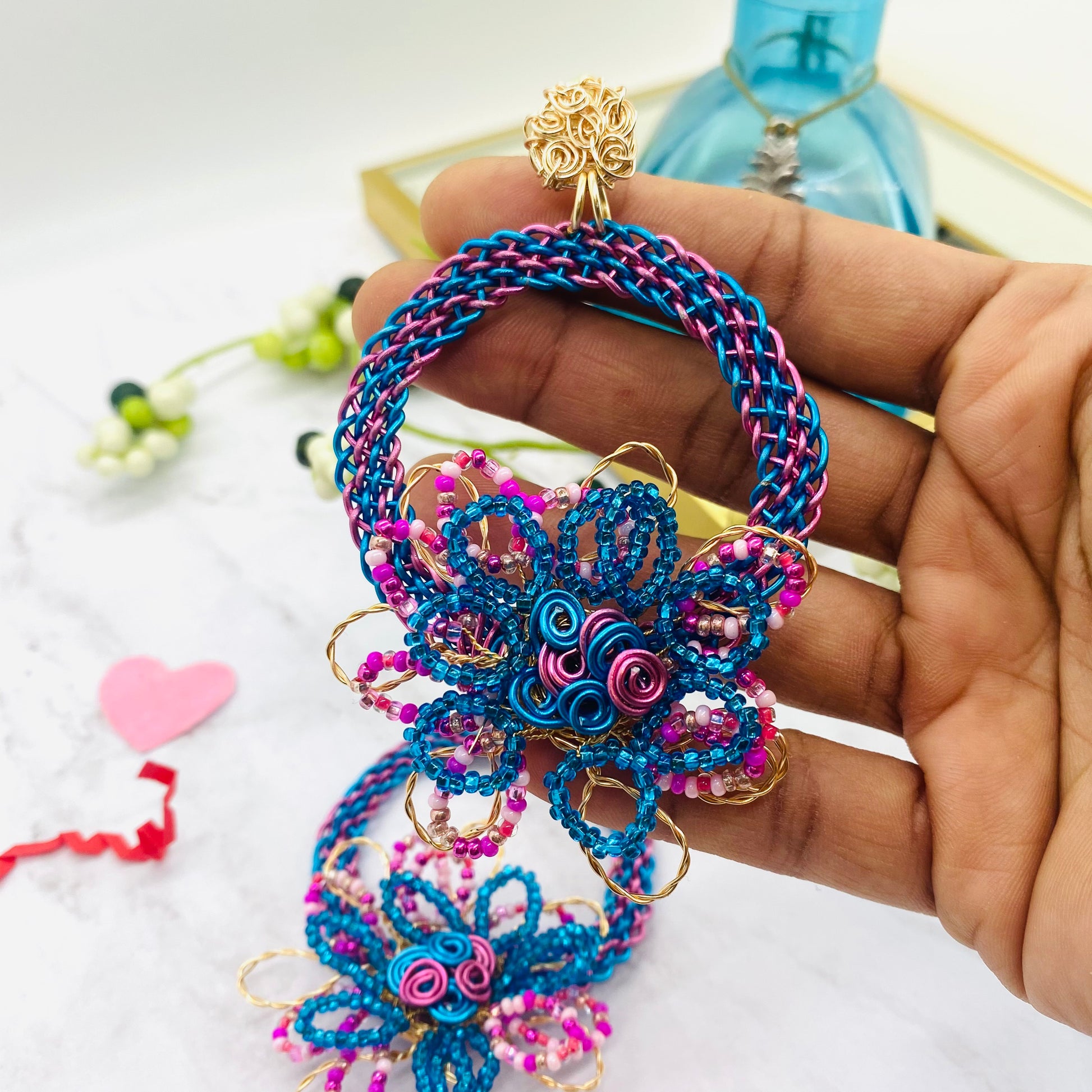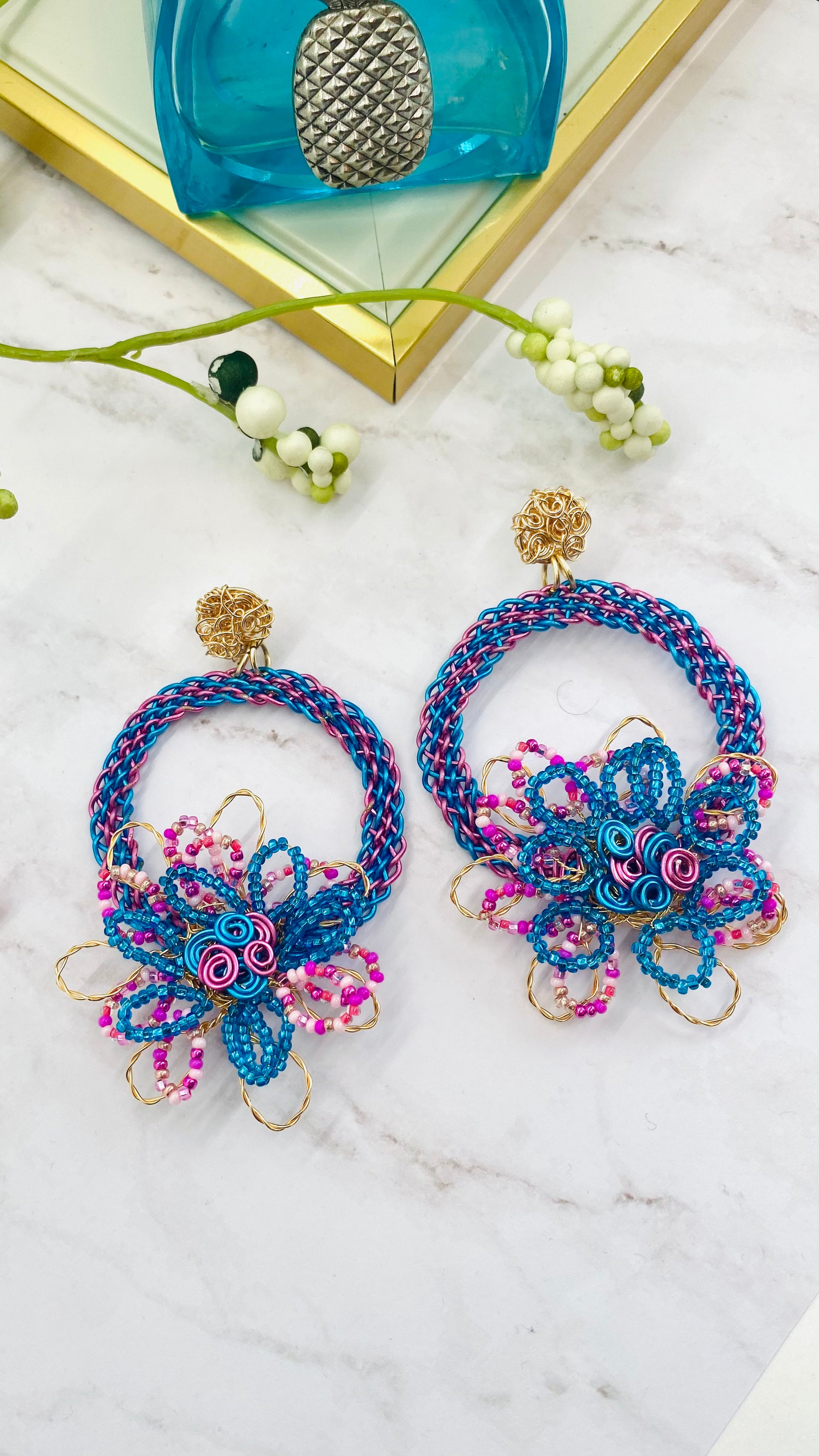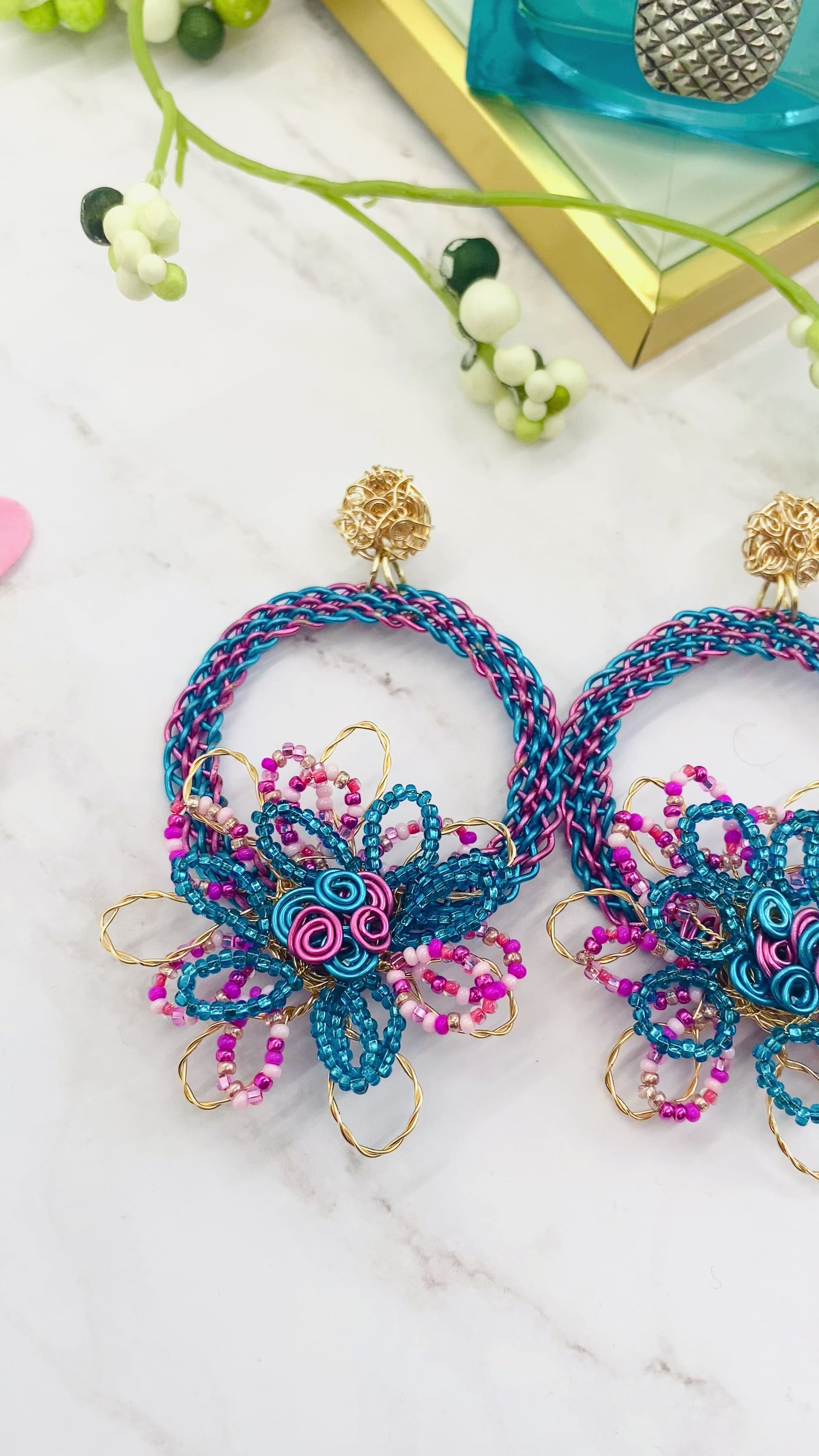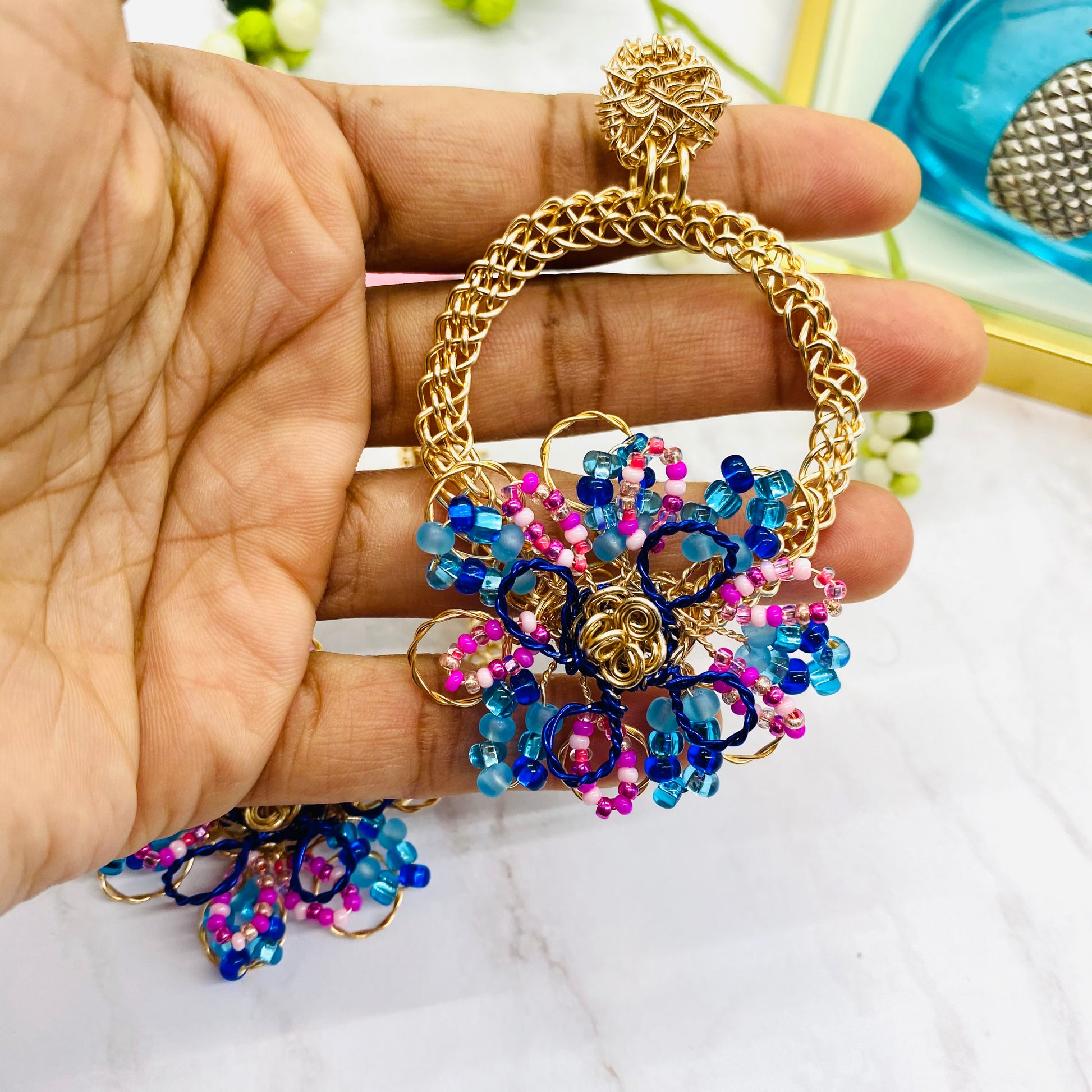 Beautiful embroidery wires earring with a circle shape of gold wire and mixed color beads, this beautiful earring belongs to the beautiful ocean collection