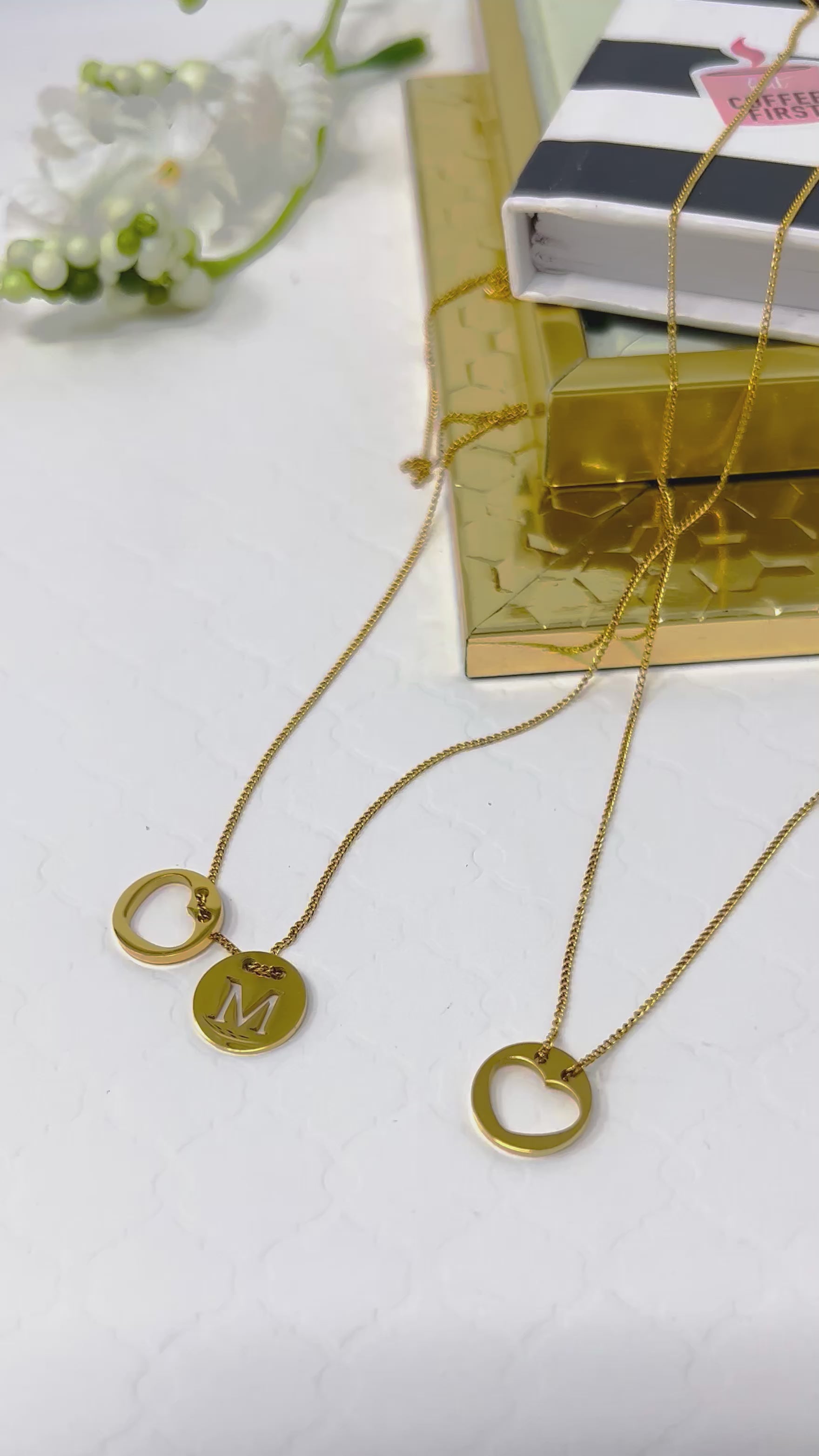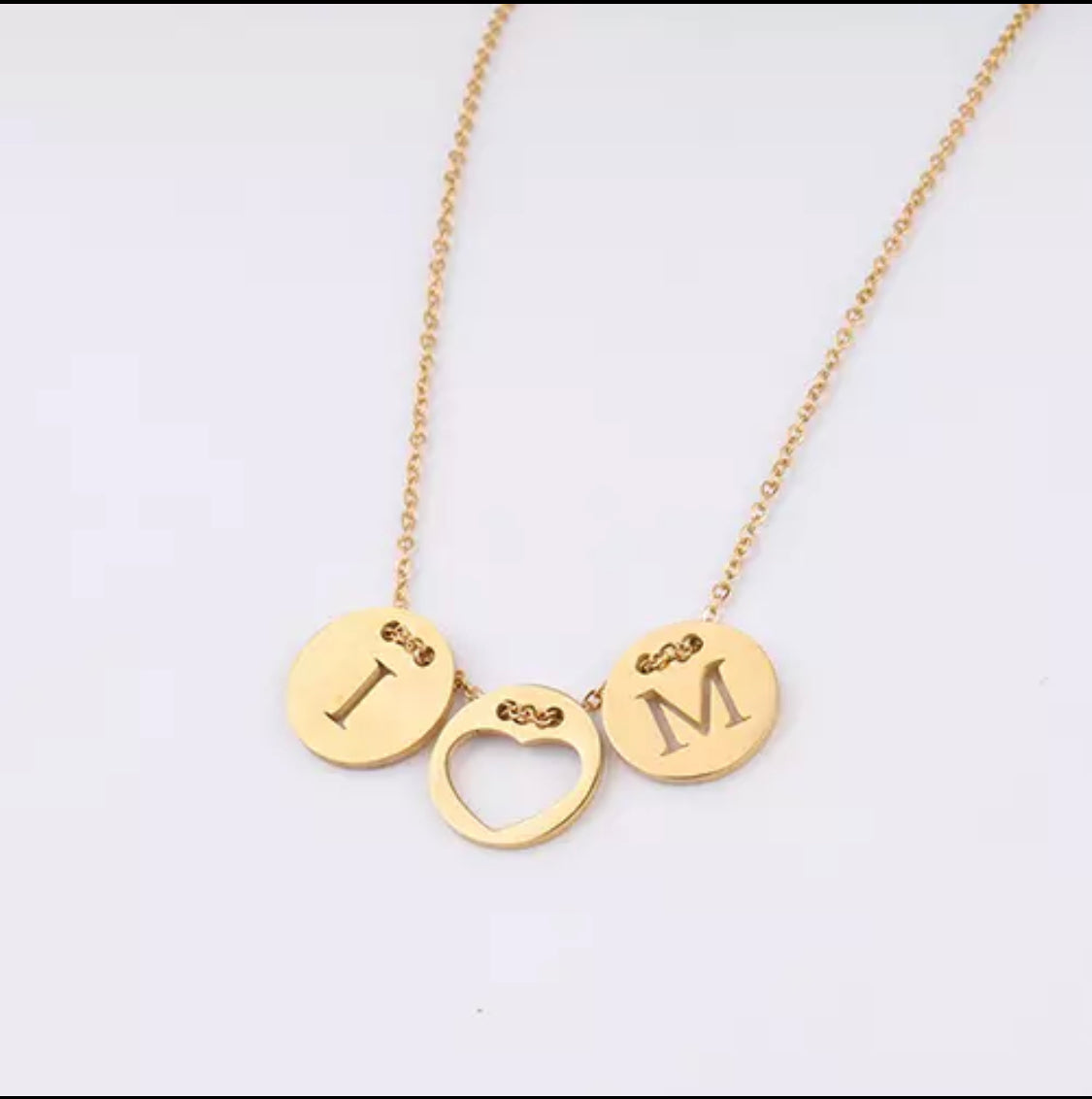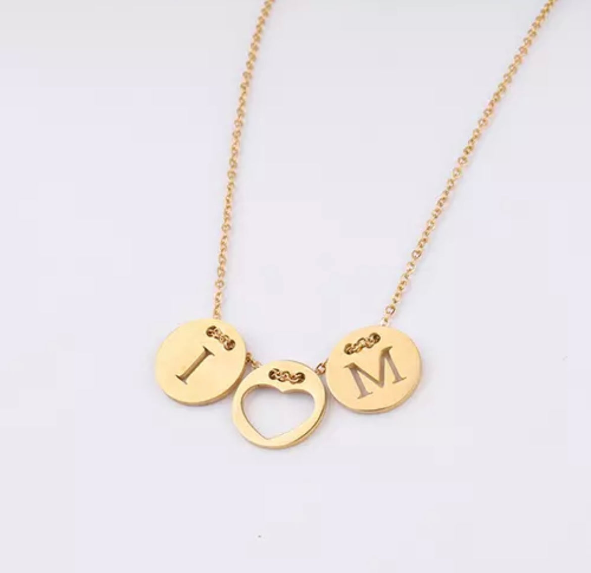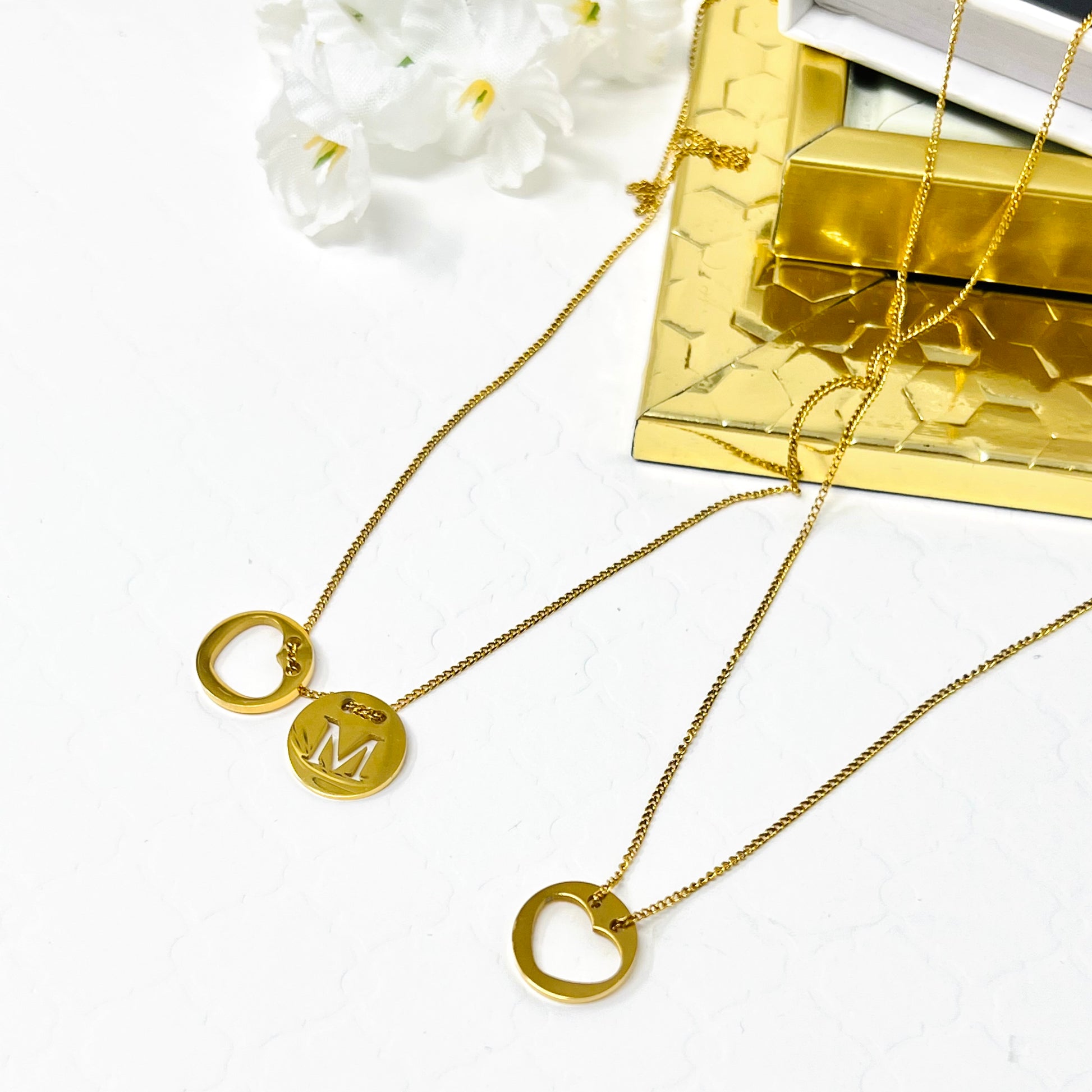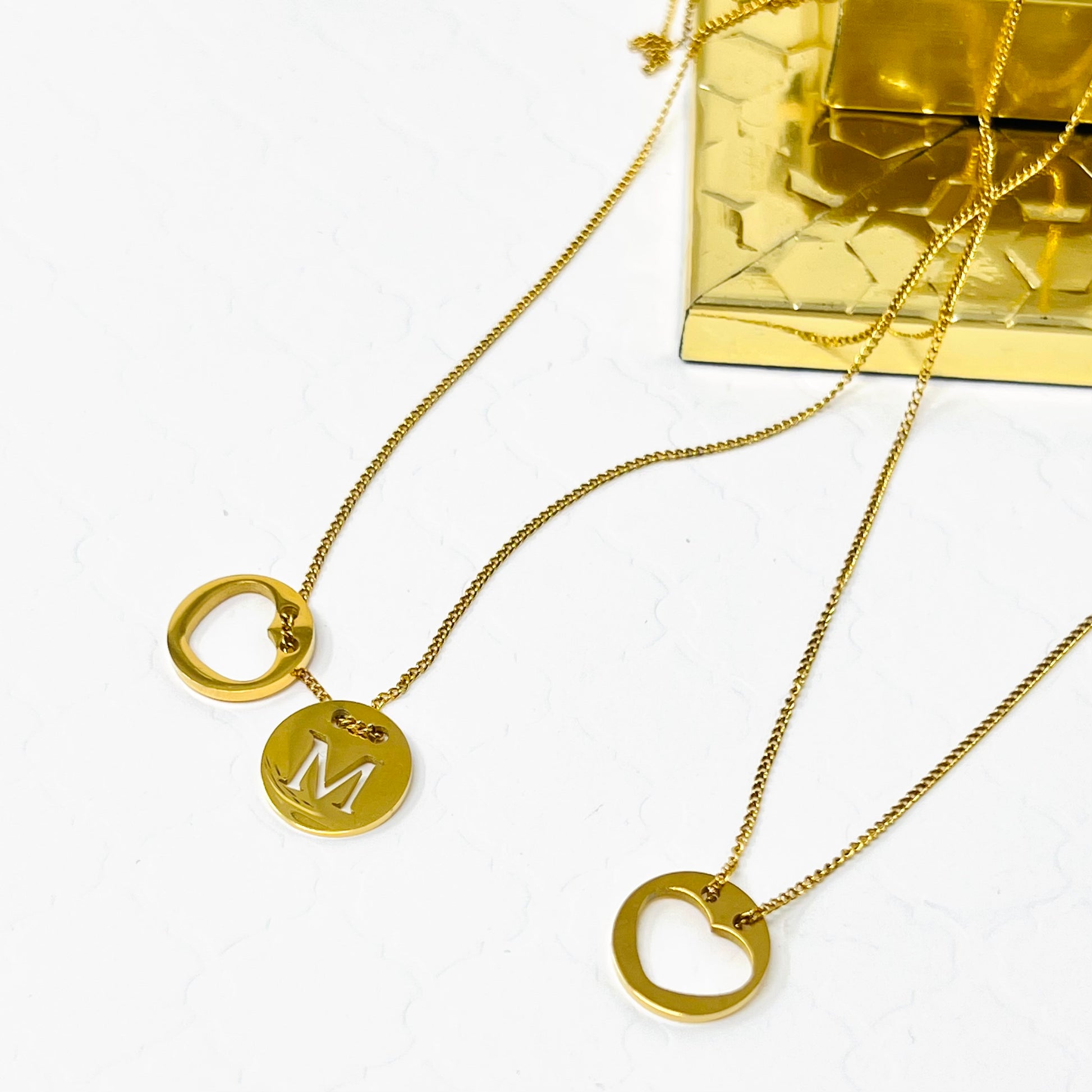Beautiful and delicate gold initial necklaces and heart gold pendant; ideal for a gift for mom, girlfriend gift, birthday gifts, Christmas gifts, Valentine’s gifts, or coworker gifts this is a stainless steel initial gold disc pendant and necklace