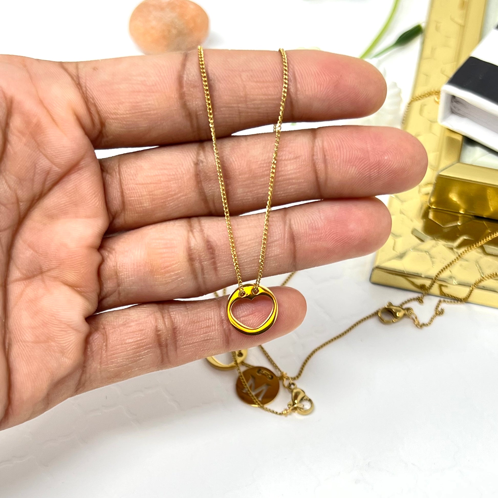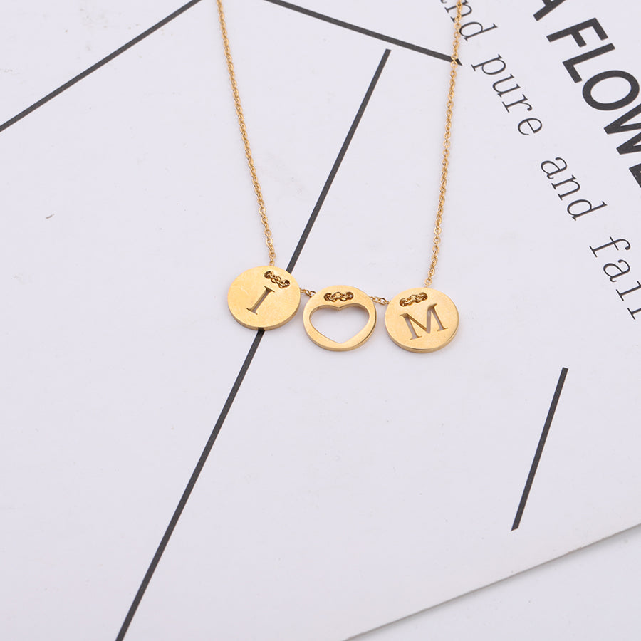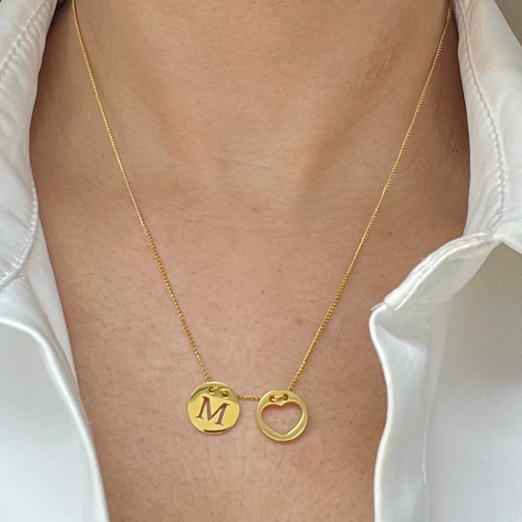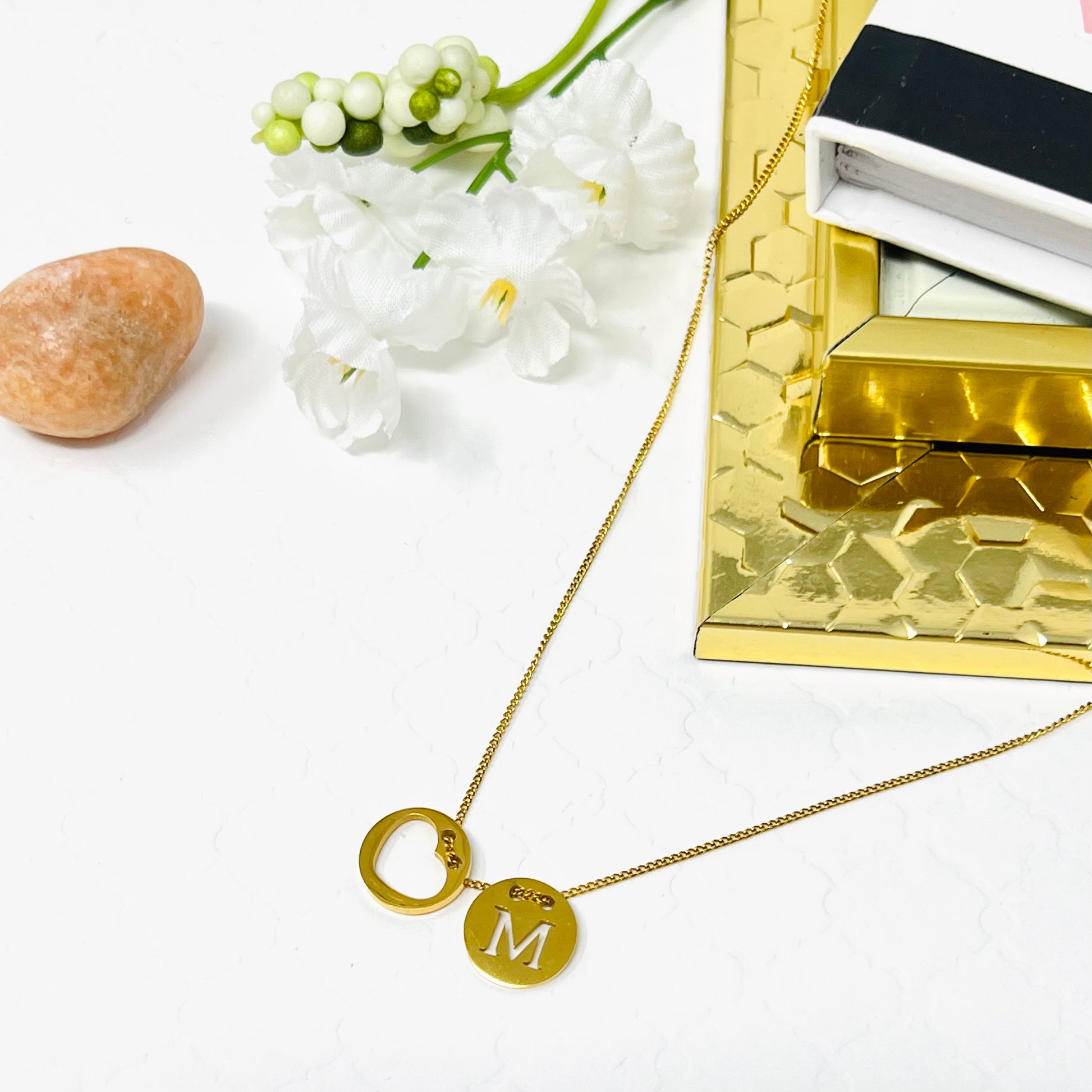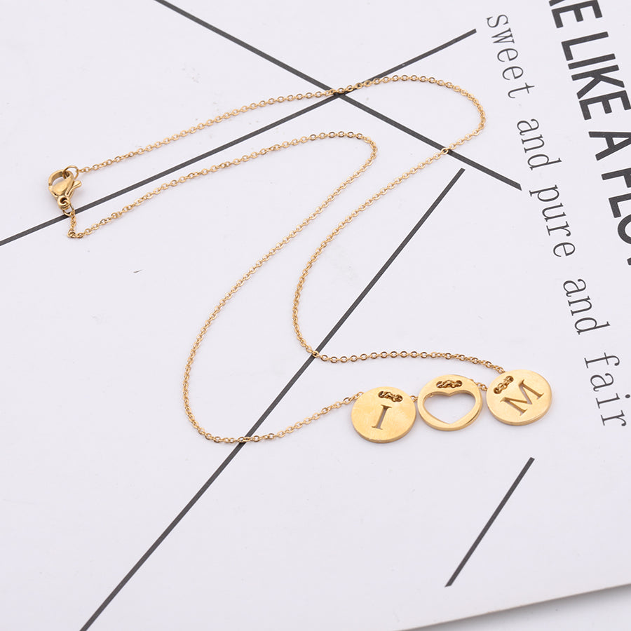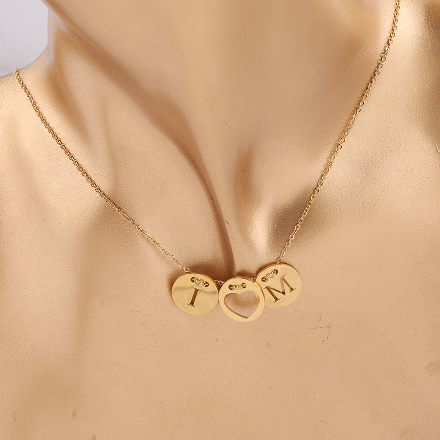 Beautiful and delicate gold initial necklaces and heart gold pendant; ideal for a gift for mom, girlfriend gift, birthday gifts, Christmas gifts, Valentine’s gifts, or coworker gifts this is a stainless steel initial gold disc pendant and necklace
