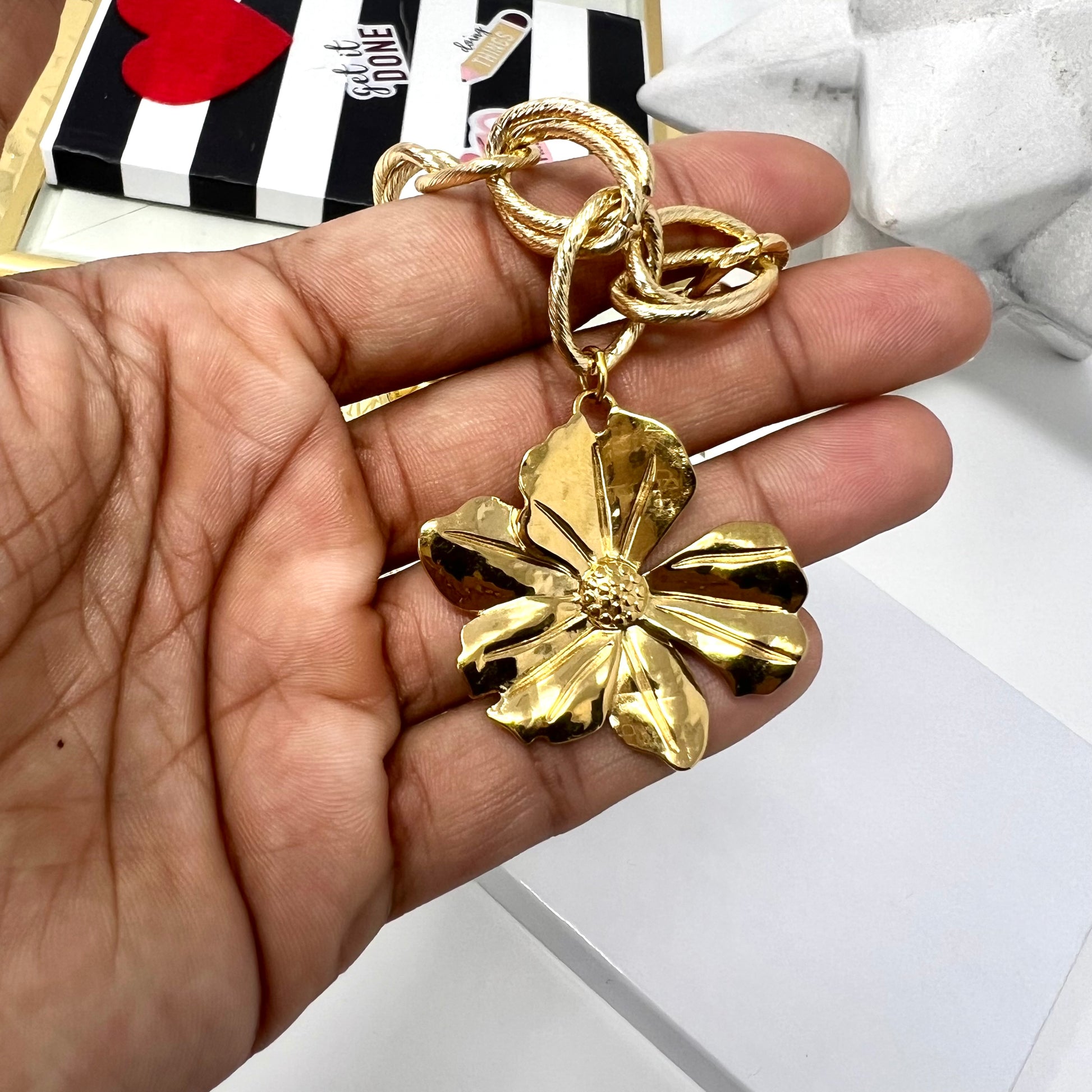 Flower Pendant Necklace, Gold Charm Necklace, Handmade Gold Plated Necklace for Women