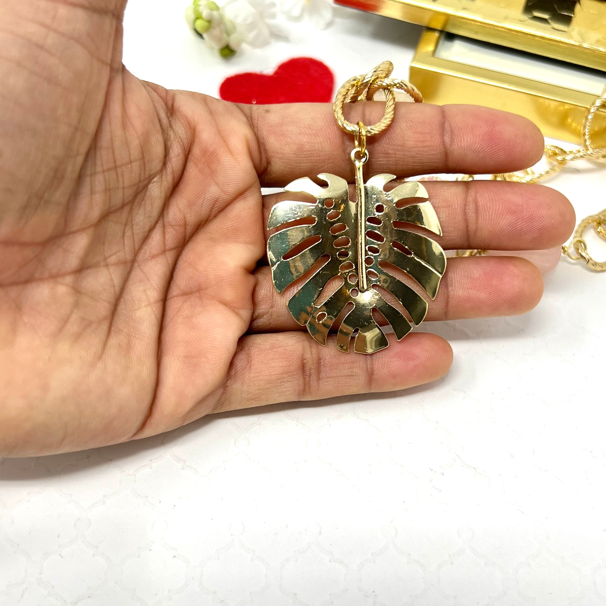 Golden Chain necklace Gold Laminated Monstera Leaf Pendant