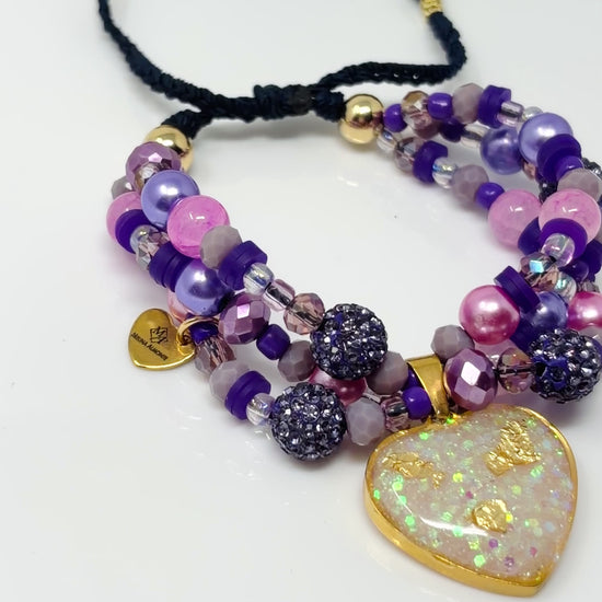 Handmade Purple Beaded Bracelet with Resin Heart Charm