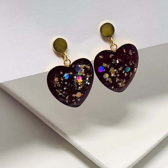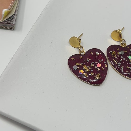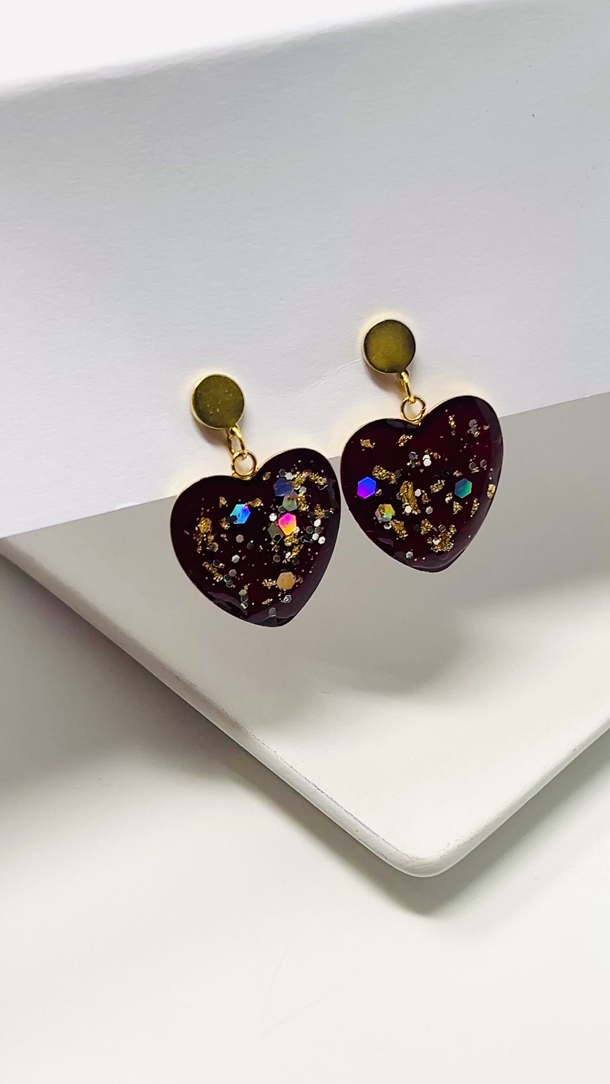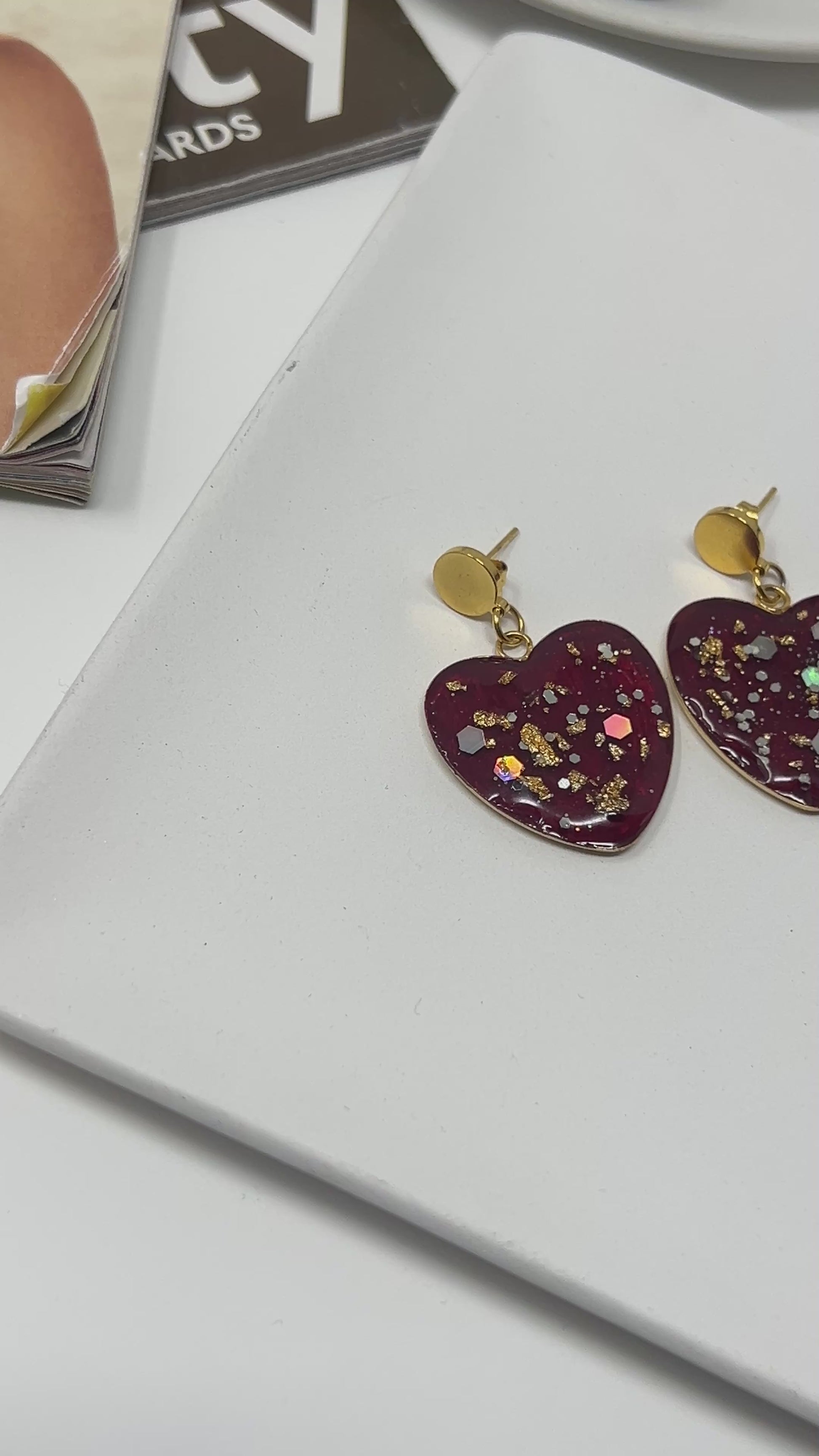 Beautiful and super light heart-shaped earrings in resin set in handmade stainless steel