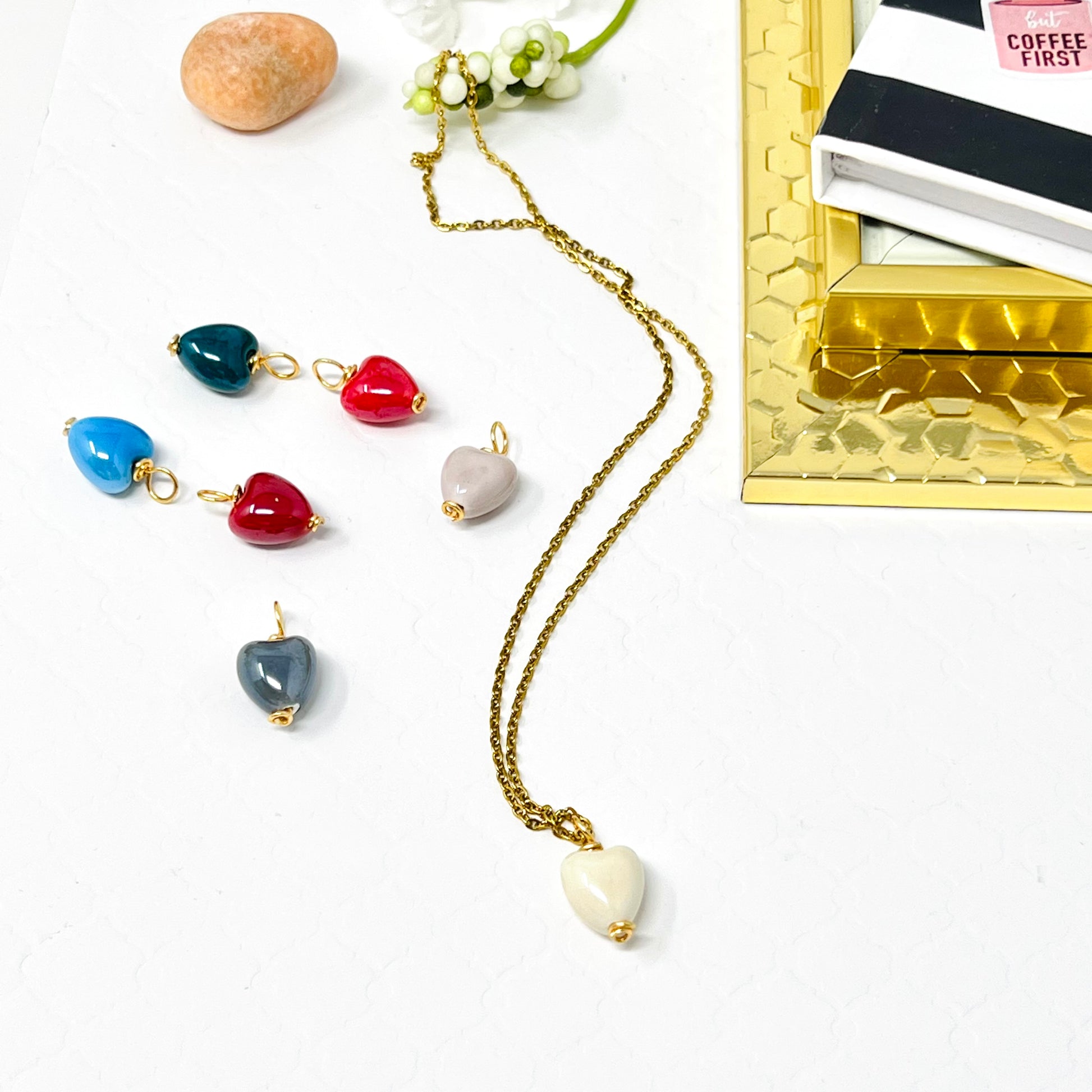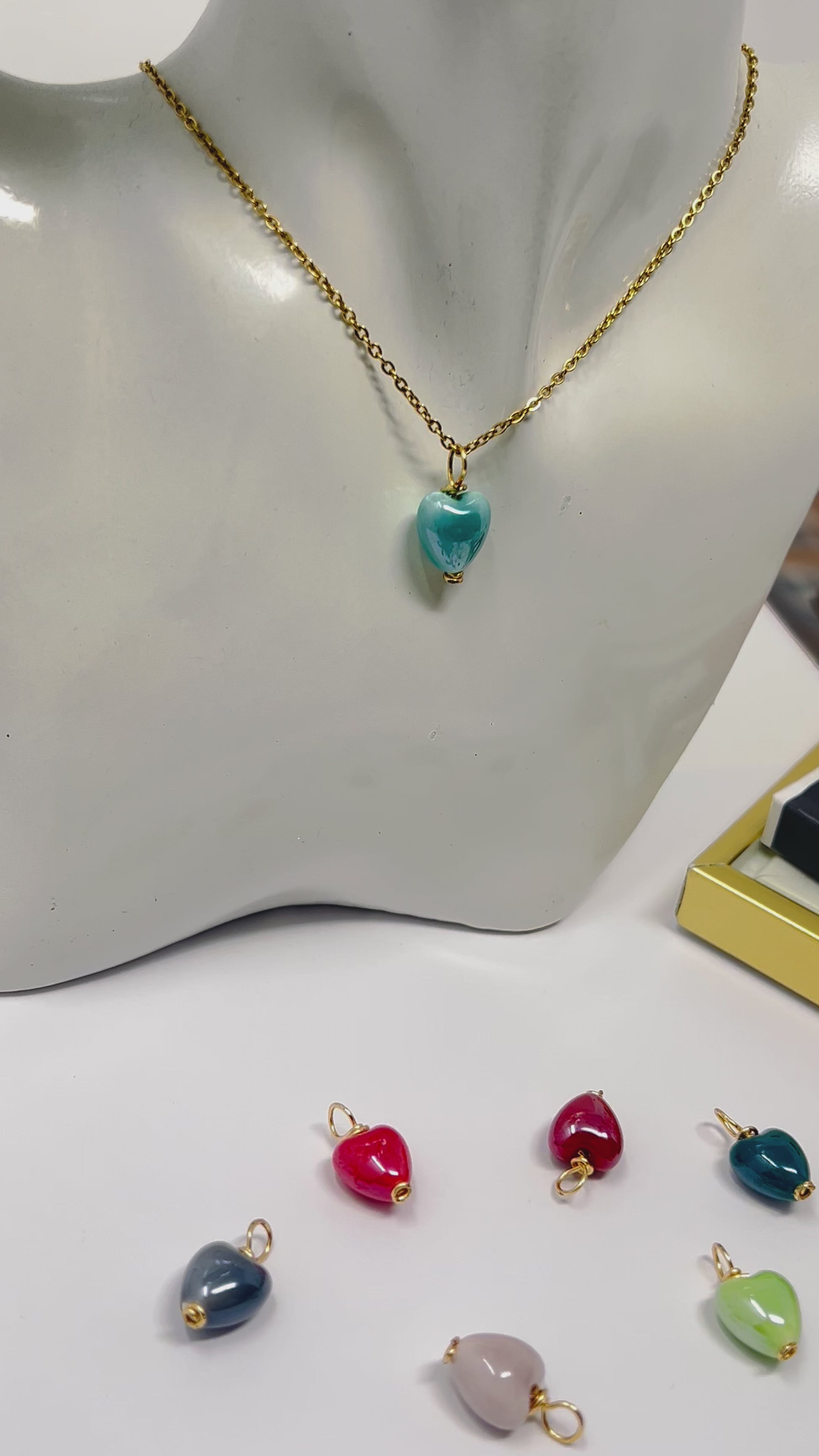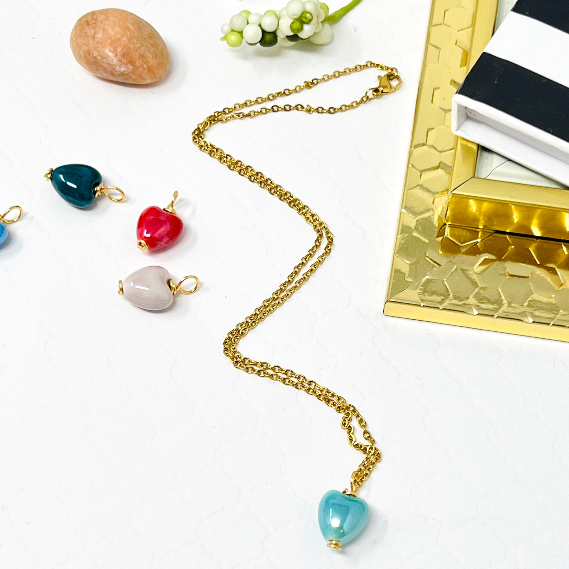 Delicate thin stainless steel chain with ceramic heart pendant, excellent to compliment your outfits and combine with other chains. It can be a great gift idea for a loved one: mom, daughter, sister, friends, etc.