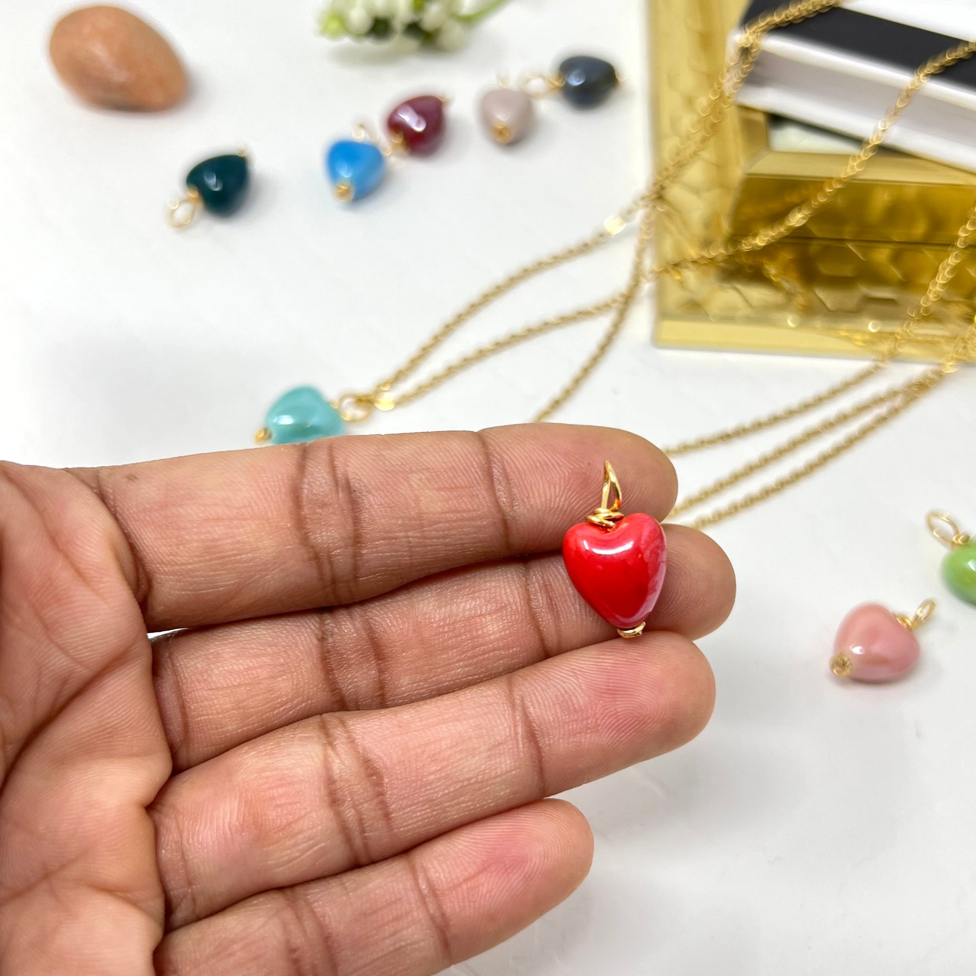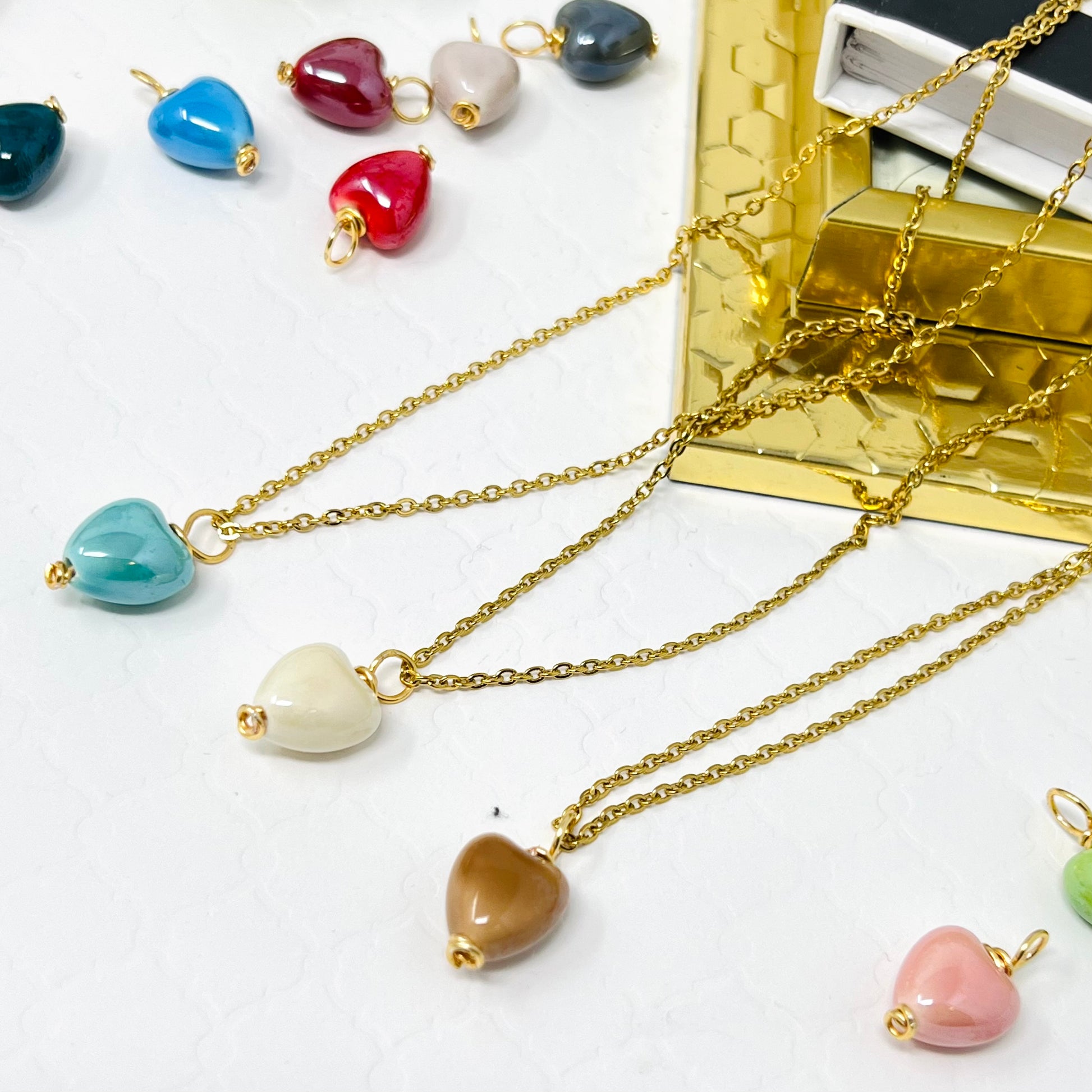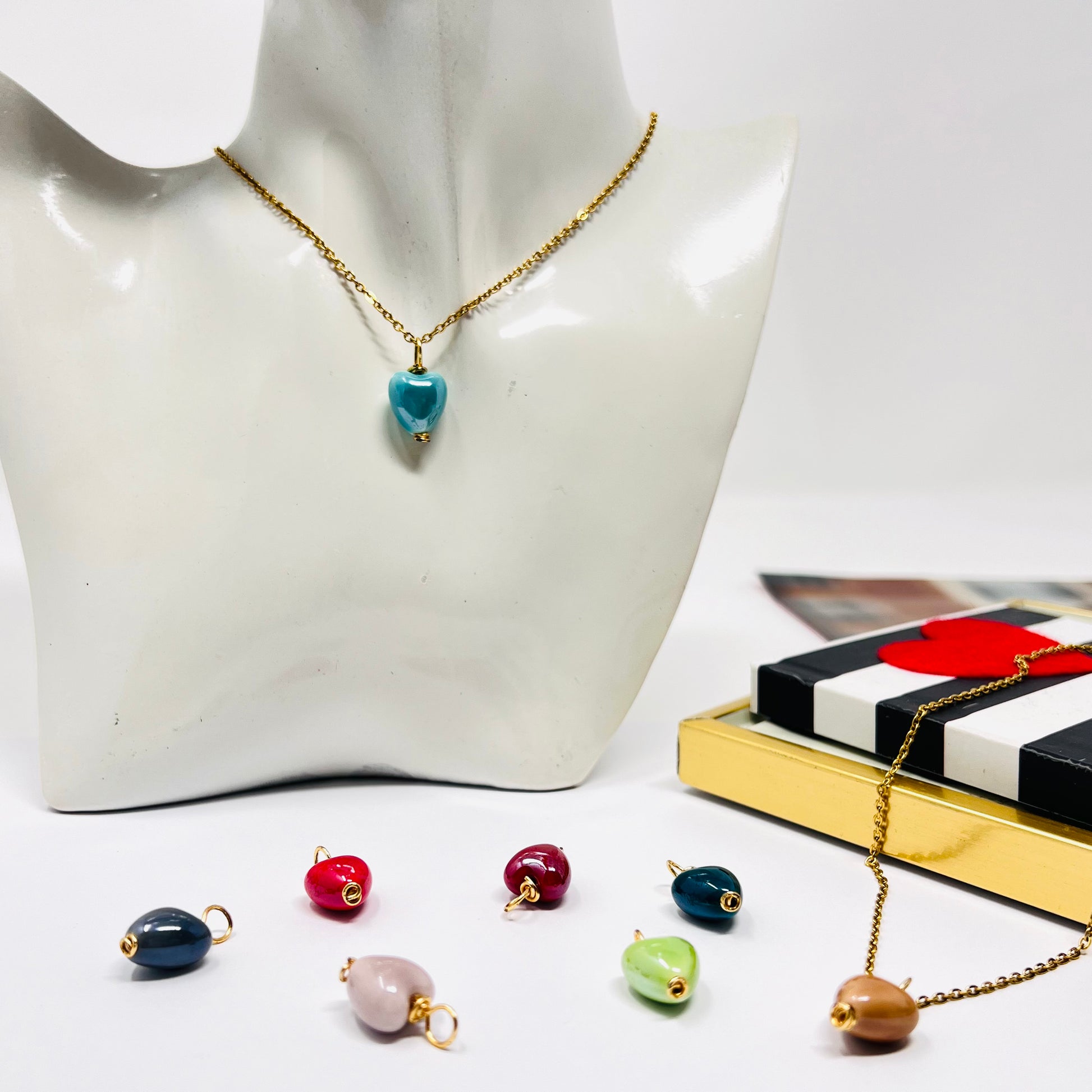 Delicate thin stainless steel chain with ceramic heart pendant, excellent to compliment your outfits and combine with other chains. It can be a great gift idea for a loved one: mom, daughter, sister, friends, etc.