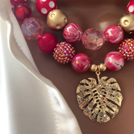 This handmade two-layer beaded necklace features chunky beads and elegant gold-plated leaf charms for a chic, modern look. The adjustable design allows you to wear it at your desired length, making it perfect for layering or as a statement piece on its own. Lightweight and versatile, this necklace adds a touch of boho elegance and style to any outfit — ideal for everyday wear or special occasions.