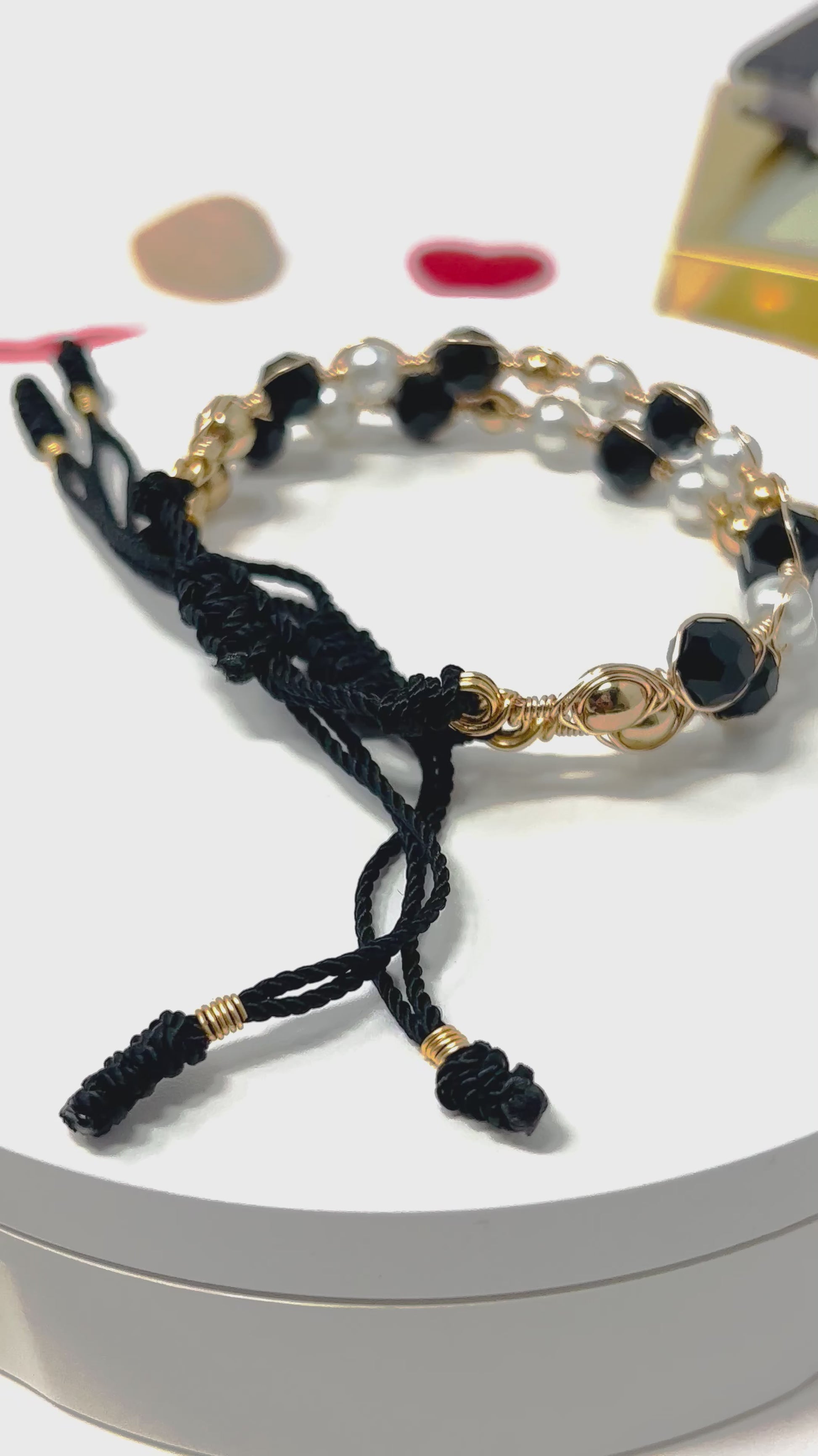 Beautiful handmade wire bracelet set two with hematites charm, pearls, and adjustable Black crystal beads.