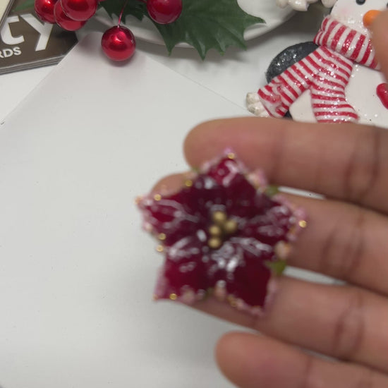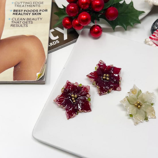 Beautiful handmade poinsettia Christmas earrings, these resin stud earrings are perfect to wear this Christmas, it is small and super light.