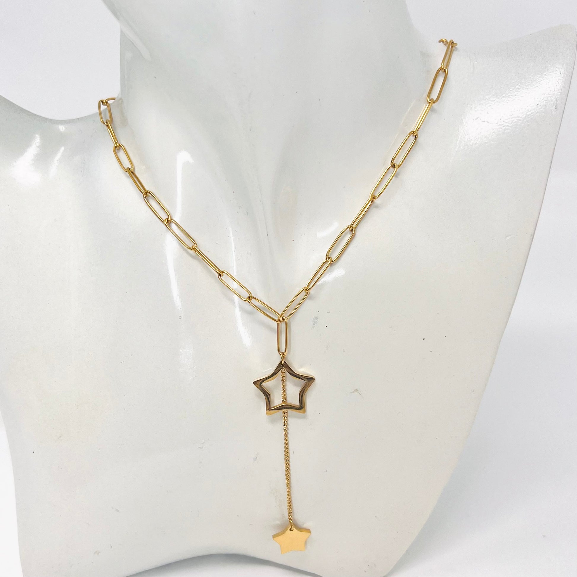 Beautiful and dainty stainless steel gold star chain, with a chain extender, excellent to wear with several more chains or alone, a great gift idea for mom, daughter, co-worker, girlfriend, wife