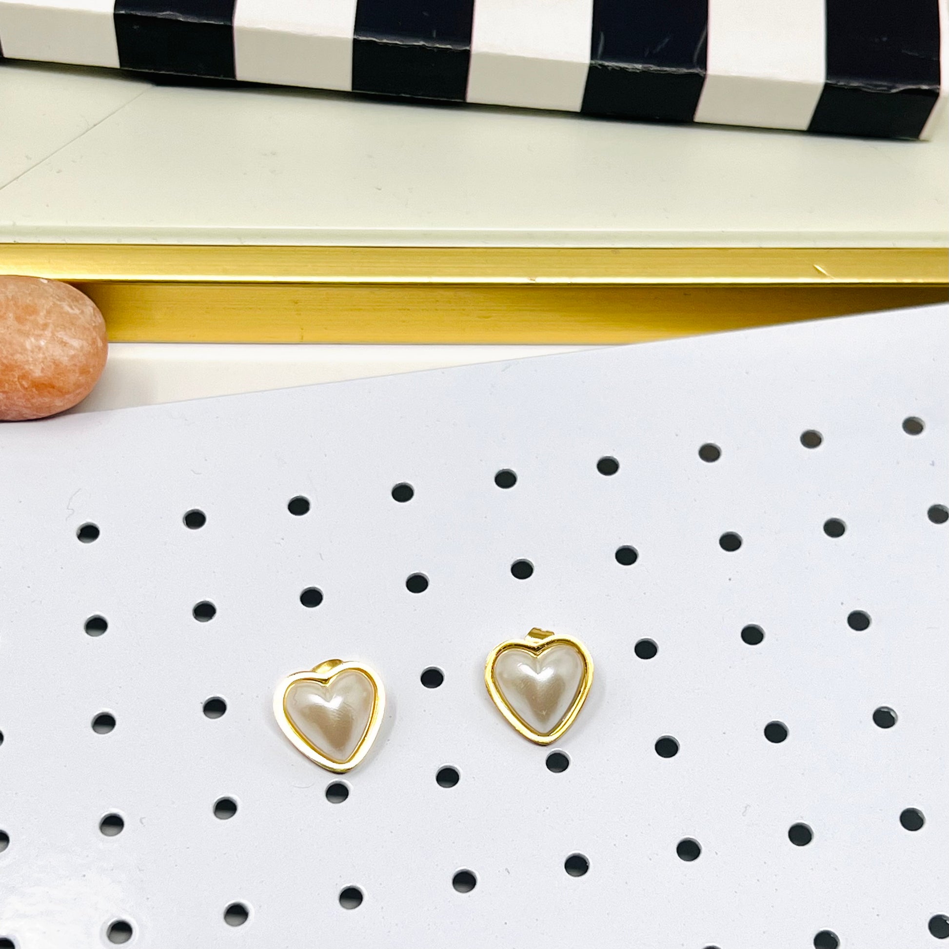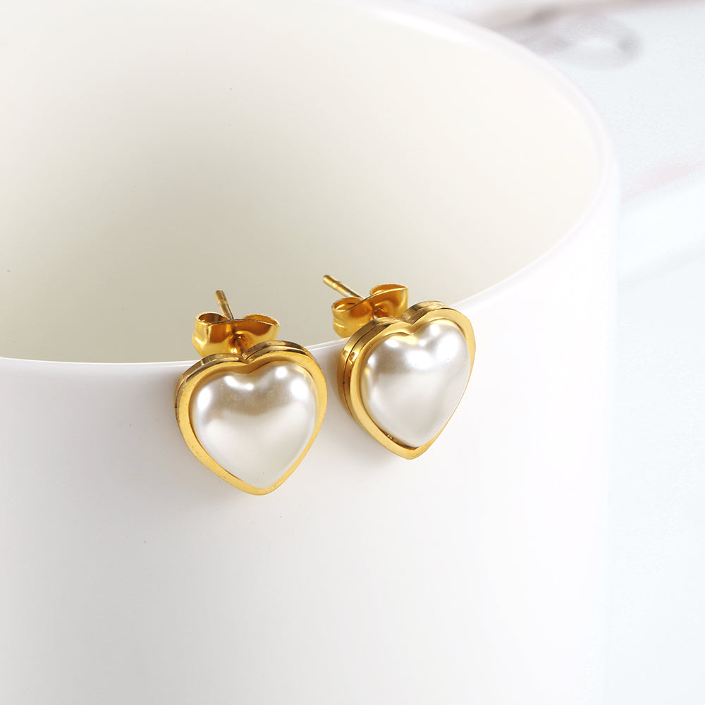 Stainless Steel Pearl Heart Stud Earrings, Dainty Gold Earrings, Post Earrings For Women